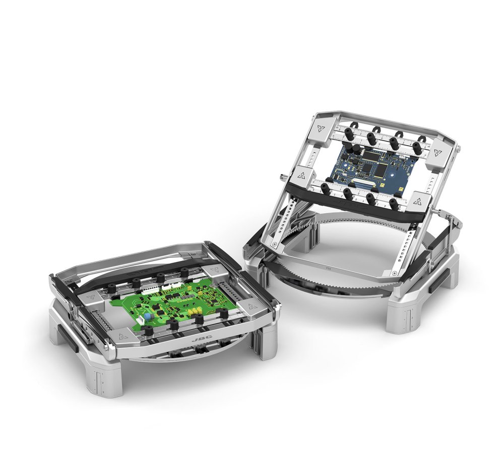 PSS - Víceosá rotační podpora je navržena pro DPS do 13 x 13 cm (5 x 5 palců). Tento produkt má za cíl ušetřit čas a optimalizovat pracovní postup tím, že umožňuje rychlé a přesné změny polohy DPS, což je klíčové pro opakované pájecí úkoly. Disponuje horizontální osou otáčení, která umožňuje otočení držáku DPS o 180 stupňů vzhůru nohama se čtyřmi úhlovými pozicemi (25°, 35°, 45° a 55°). Navíc vertikální osa otáčení umožňuje umístění DPS do libovolného úhlu, včetně vodorovné a nakloněné polohy. Podpora také nabízí tři různé výšky a v kombinaci s předehřívačem PHSE zajišťují její vestavěné drážky přesné zarovnání desky s předehřívačem pro konzistentní zahřívání.