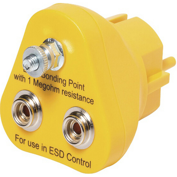 Zemnící bod se připojuje přímo do elektrické zásuvky a je elektricky spojen jen se zemnícím kolíkem zásuvky - je vybaven 1Mega Ohmovým resistorem. Na přední části ESD zemnícího bodu jsou umístěny obvyklé zemnící prvky jako druky, banánkové zdířky, nebo šroubek s matičkou, pod kterou lze vodičem uzemnit jakékoliv zařízení. 1 Mega Ohmový resistor zajišťuje bezpečnost - při 230V může být proud pouze 0,3 mA. Technická data: Resistor : 1 MOhm Připojení : Uzemnění pomocí zemnícího kolíku a zemnících svorek (nahoře a dole v zásuvce) Materiál : žlutý plast ABSHmotnost : 34gRozměry : 65 x 50 x 50 mmZemnící bod je uzavřen v plastovém obalu a nemůže být otevřen například pro případ oprav. Pro otestování každého z výstupů lze použít klasického multimetru a proměřit odpor mezi zemnícím plíškem (strana zásuvky) a jednotlivými vývody. Naměřeno by mělo být 0,9 - 1,1 Mega Ohmu. Každý výstup má svůj vlastní odpor a naměřitelný odpor mezi dvěma výstupy by měl být okolo 2 Mega Ohmů. Všechny zemnící body jsou po výrobě, před expedicí otestovány. Objednací čísla: 070-0016 - model s 2 x druk 10mm a 1 x M5 šroub s maticí